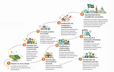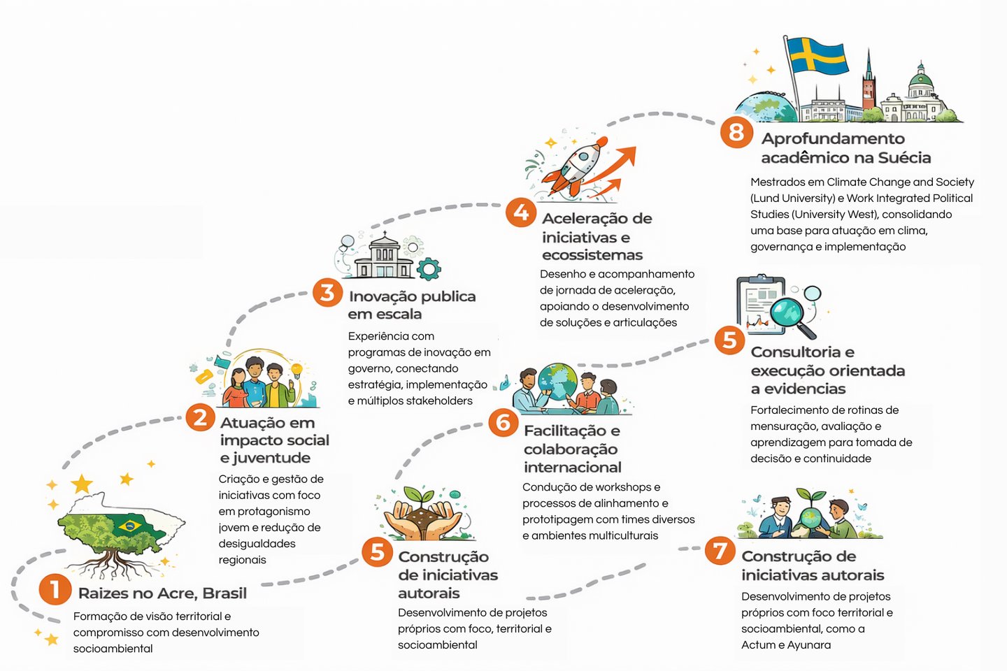 Hoje, aprofundo esse repertório em dois mestrados na Suécia: Climate Change and Society na Lund University e Work Integrated Political Studies na University West. O eixo que conecta minha trajetória é a implementação em ambientes complexos, quando múltiplos atores, restrições reais e incerteza exigem método, clareza e consistência.
